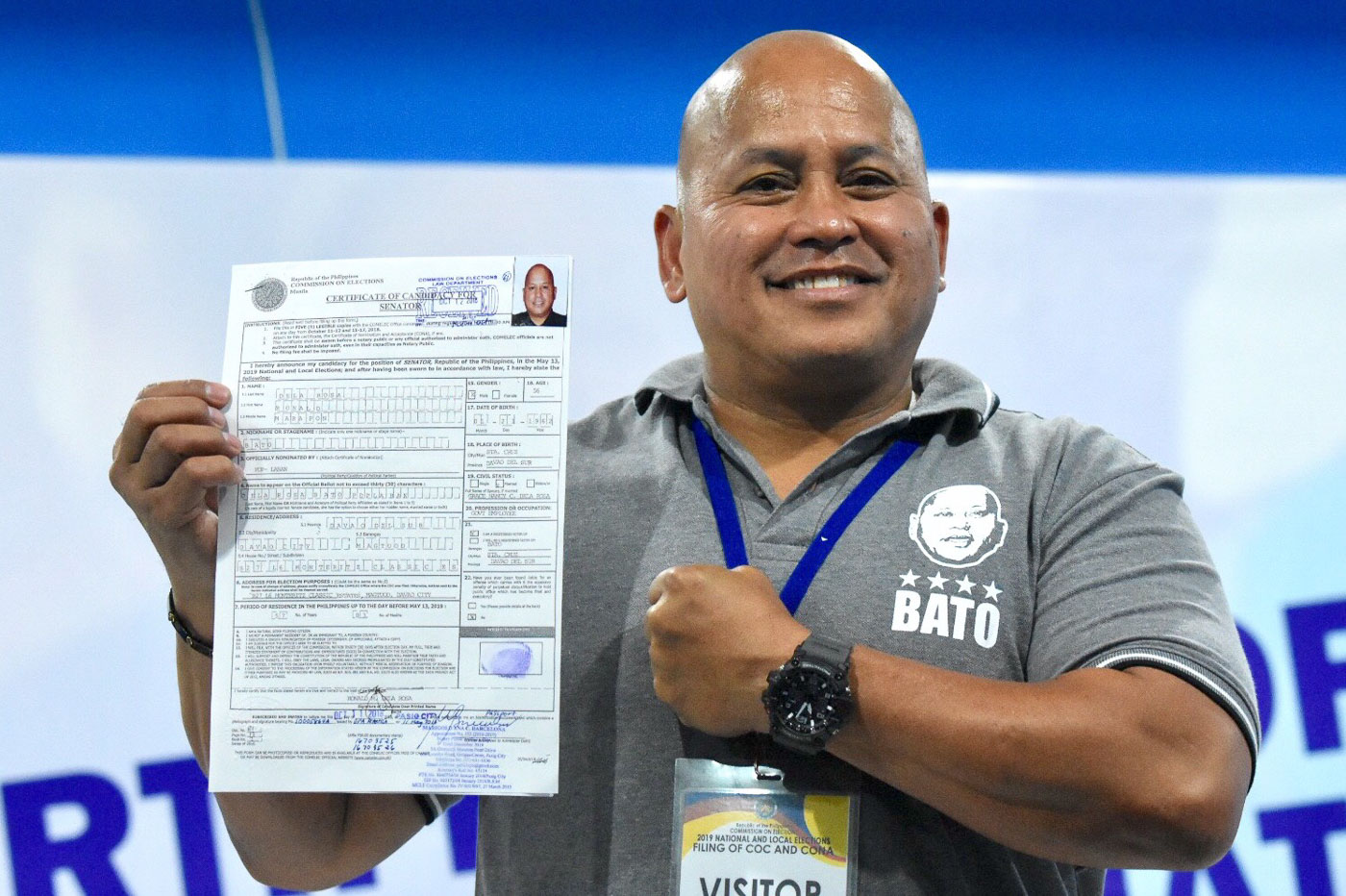 Chel Diokno and Senator Bato dela Rosa to discuss the details of anti-terror bill Watch this video. Senator Ronald Bato dela Rosa on Friday afternoon filed his certificate of candidacy COC to run for president in 2022 under the PDP-Laban wing led by Energy Secretary Alfonso Cusi. Ronald Bato dela Rosa has surfaced as the standard-bearer of the administration-led faction of the PDP-Laban party.